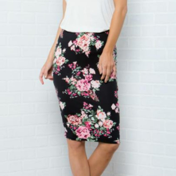 Acting Pro Skirts Soft Black Floral Pencil Skirt Poshmark